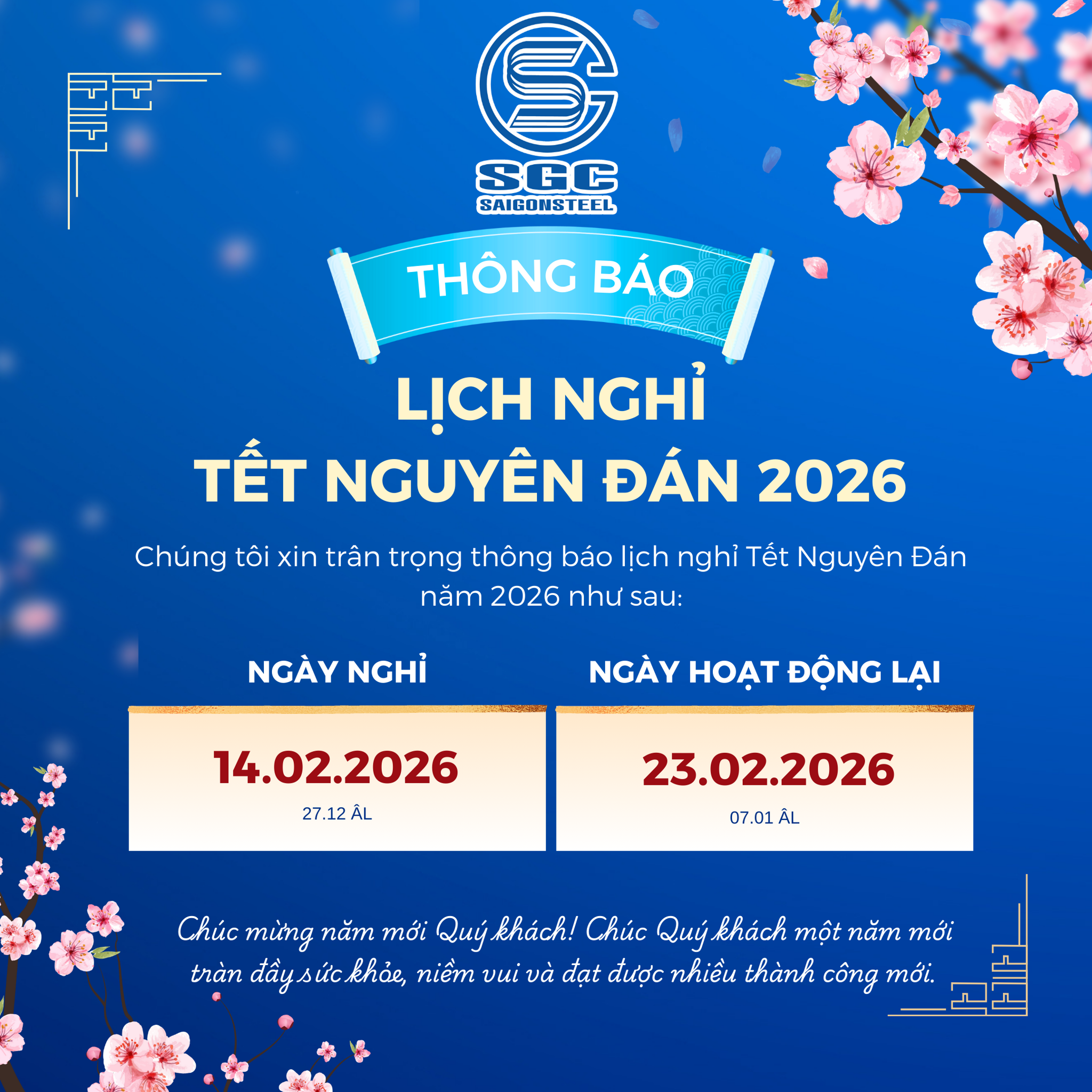 Thông báo Nghỉ Tết Âm lịch 2026 26/01/26 Nguyễn Hoàng Phong x Từ khóa: THÔNG BÁO Các bài viết liên quan Thông báo nghĩ tết dương lịch 2026 Thông báo Nghỉ Lễ 2 tháng 9 Thông báo thay đổi địa chỉ. Thông báo nghỉ lễ 30/4 & 01/05/2025 Thông Báo Nghỉ Tết Nguyên Đán 2025